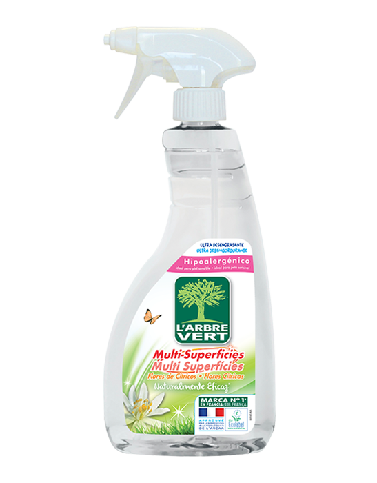 Certificado por Ecolabel (o en proceso de certificación), este spray desengrasante ecológico es hipoalergénico y puede ser utilizado por personas con piel sensible.