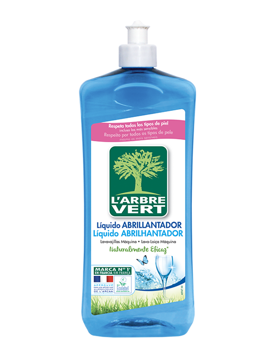 Este líquido abrillantador ecológico respeta todo los tipos de pieles, incluso las más sensibles, y está certificado con la etiqueta ecológica europea.
